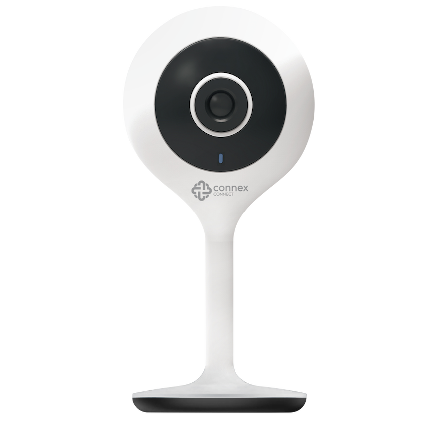 Real Time Monitoring Enjoy peace of mind knowing you can get a live video feed of inside or outside your home. Automate your smart home with intelligent alerts.Video Playback : Log in to your camera any time to get a live view of activity at your home on your smart phone. 2-Way Audio : Intercom-style audio means you can hear what is going on and talk through the camera. Camera Sharing : Share camera access with family or colleagues, allowing multiple people to check in any time.720p-camera DAY / NIGHT VISION Get crystal clear HD video footage during the day and at night with enhanced night vision. The auto infrared LED switches on in low light levels ensuring your view is not obscured in the dark.Features:Camera Sharing Share camera views with trusted family members or share individual cameras with work colleagues for security and peace of mind.Home Automation Trigger other Connex Connect Smart Tech devices when your camera detects movement or audio. Turn on lights or sound an alarm to scare away intruders.Record All Activity The camera automatically saves a snapshot to the cloud whenever movement is detected. Insert an SD card a record up to 72 hours of footage to review later.Easy Installation Getting one or multiple cameras set up around your house is easy. All you need is a Wi-Fi connection and a power plug. Pair the camera to your home network and access it immediately from the Connex Connect app.All From One App The free Connex Connect app controls all of your Smart Tech devices with an easy to use interface and intelligent automation Features: including push notifications, configurable scenes and IFTTT integrations.What’s in the box1 x Camera