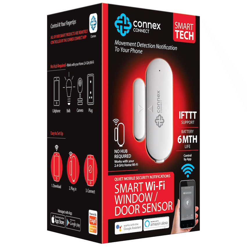 Detect the status of your doors and windows and movement in your Home.Battery Operation : No more cables, Motion detector and Magnetic switch operate on batteries. Sharing : Share access to sensors with family or colleagues, allowing multiple people be notified of sensor trigger. Alarm : Trigger a 90dB siren when sensors are triggered (sold seperately)Increase Security Improve the security of your home with Connex Connect Smart Sensors. Prevent unwanted intruders and keep your home and your family safe with Realtime alerts.Features:Smart Sensor Sharing : Share sensor control with trusted family members or share with work colleagues for security and peace of mind.Sleek and compact design : Connex Connect small, sleek and compact design make these sensors simple and convenient to install.Control From Everywhere Control household appliances from anywhere via Connex Connect App. Turn house lamps on/off from work, or make sure your room is illuminated even before you step insideAll From One App The free Connex Connect app controls all of your Smart Tech devices with an easy to use interface and intelligent automation Features: including push notifications, configurable scenes and IFTTT integrations.What’s in the box1 x Door / Window Sensor