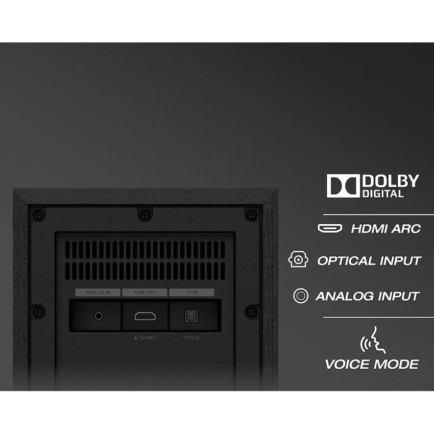 The Sony HT-S20R, your ticket to the best seat in the house for an immersive audio experience. This sound system, comprised of a soundbar, subwoofer, and rear speakers, creates authentic surround sound that puts you at the heart of all your favorite movies. With a powerful 400W output and Dolby Digital , every movie scene comes to life with stunning clarity. Featuring five speakers and a subwoofer, the HT-S20R delivers big, full-frequency sound that fills your space. Dive into the cinematic world with dramatic surround sound from 5.1 separate audio channels and Dolby Digital technology. Tailor your audio experience with a dedicated button for every sound – choose from Auto, Standard, Cinema, Music, Night, and Voice modes. Fine-tune your viewing experience with subwoofer volume control. But it’s not just about movies and TV – easily play your favorite music through the soundbar. Setting up the HT-S20R is a breeze; it’s almost ready to go straight out of the box. Simply plug it in, connect your main bar speaker and rear speakers via color-coded connections, position the wired subwoofer and rear speakers, and enjoy 5.1 channels of real surround sound.