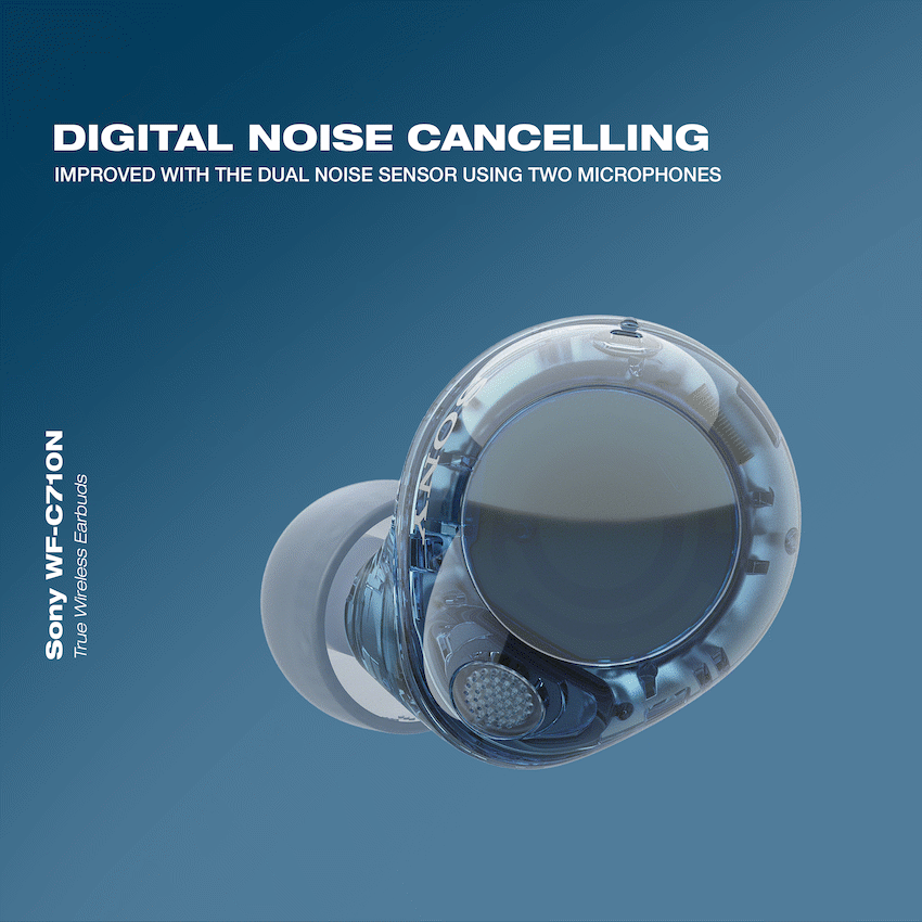 WF-C710N Wireless Noise Canceling Earbuds are the ultimate everyday audio essential with optimal noise canceling abilities.Enjoy all-day comfort with up to 8.5 hours on headphones and up to 21.5 hours in the case.1Crystal-clear calls with voice pickup that utilizes AI technology.Enjoy high quality sound with Sony’s unique 5 mm driver and Digital Sound Enhancement Engine processing (DSEE).Choose between four timeless colors including Glass Blue, Pink, White, and Black.6Enjoy more of your music with Advanced Noise Canceling and Dual Noise Sensor technology.Stay connected to your environment with Ambient Sound Mode through dual mics.Adjust your ambient sound in 20 levels or use the Focus on Voice setting to chat without removing your headphones through Sony | Sound Connect App.3Customize your sound with presets or create your own using the EQ Custom feature in the Sony ? Sound Connect app.3Enjoy your music in an effortless way with simple taps as a shortcut to your music.Pair with two compatible Bluetooth(R) devices simultaneously using Multipoint Connection, automatically switch between devices when it’s convenient for you