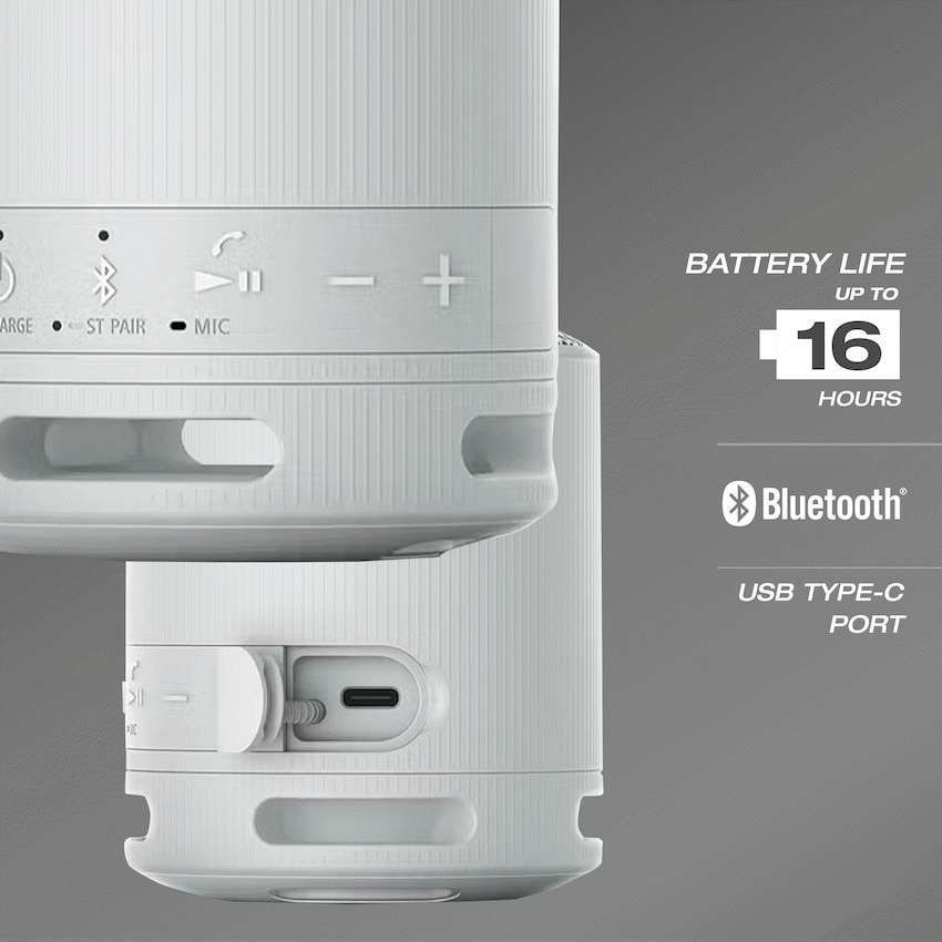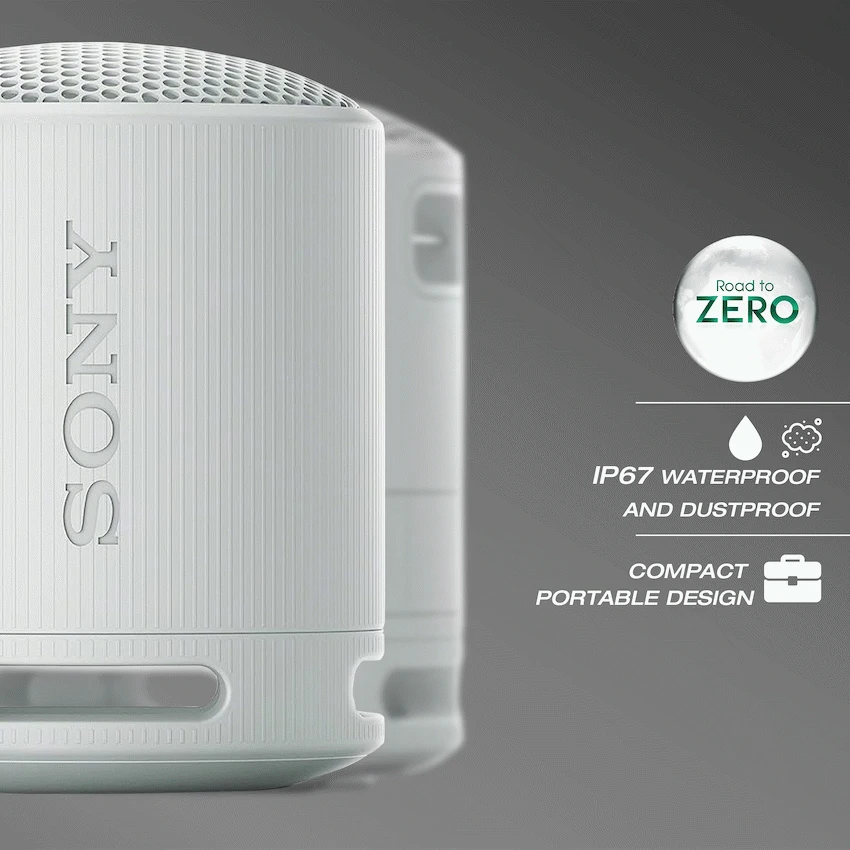 The Sony XB100 Portable Wireless Speaker – your perfect audio companion! Immerse yourself in mighty sound at any volume, thanks to the X-Balanced Speaker Unit that elevates low notes and minimizes distortion. With a user-friendly Sound Diffusion Processor, this speaker delivers an exceptional audio experience, ensuring crystal-clear sound expansion. Plus, enjoy eco-friendly vibes with plastic-free packaging and a body partially crafted from recycled plastic. Take your tunes on the go with an impressive 16 hours of playtime and the convenience of a Type-C charging port. Rest easy by the pool or during your adventures – the IP67 waterproof rating ensures worry-free splashing and protection against moisture.The XB100 is not just a speaker; it’s a sustainable, powerful, and stylish audio solution, complete with a strap for easy portability and voice assistant compatibility with Siri and Google Voice Assistant. Elevate your sound experience with Sony XB100 – where innovation meets eco-conscious design!Specifications:Bluetooth Version 5.3, 2.4 GHz bandUp to 16 hours of battery life (1400mAh) with indicatorPowerful, clear sound, with a deep bassWaterproof and dustproof (IP67 rated)Microphone w/ echo cancelling technologyCrystal-clear hands-free callingCompatible with a second speaker for stereo soundSound Diffusion Processor expands sound far and wideWhat’s in the box1 x Wireless Speaker1 x USB Type-C cable1 x Strap1 x Instruction Manual