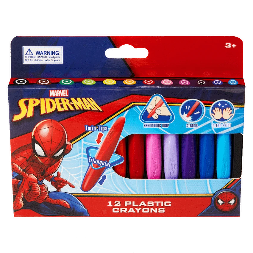 Spider-Man 12 Plastic Crayons Twin Tip Triangular – Multi