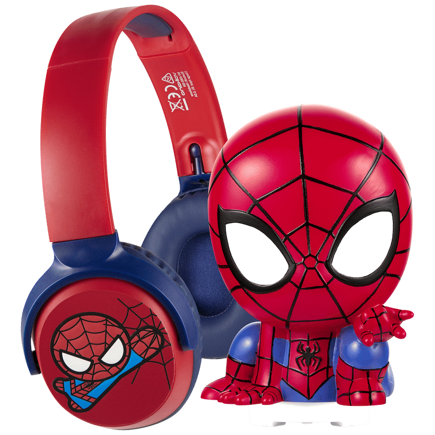 Unleash your child’s inner superhero with the Marvel Spider-Man Bluetooth Headphones and Soft Touch Light Combo. This powerful duo combines kid-safe, wireless headphones with a glowing soft-touch Spider-Man light, making it ideal for music, stories, or winding down after a busy day of adventure.Designed with young fans in mind, the Bluetooth headphones feature a foldable design, built-in mic, and both wireless and AUX connectivity. Whether your little hero is listening to web-slinging soundtracks or chatting with friends, they’ll love the comfort and versatility. Meanwhile, the Spider-Man soft touch light brings a sense of calm with its gentle, glowing colours and two light modes – perfect for bedtime or superhero HQ setups.Both the headphones and light charge via USB-C, keeping things modern and easy to use. It’s the ultimate Spider-Man gift set for fun, function, and fandom.Feature Highlights:Bluetooth Connectivity – Enjoy wireless freedom with easy pairingBuilt-In Microphone – Great for calls, chats, or online learningTwist & Fold Design – Portable and adjustable for growing kidsSoft Mood Light Colours – Creates a calming atmosphereAux Input – Switch to wired mode anytimeBattery Operated Light – No cords needed for setupTechnical Specifications: Light:Material: PVCBase Size: ? 7.4cmBulb Type: 4 pcs SMD2835Light Functions: Quick Flash & Slow FlashHeadphones:Material: ABS & PU LeatherBluetooth Version: 5.3Bluetooth Distance: 10mChipset: JL7003Impedance: 32 ?Frequency Range: 20Hz – 20kHzSensitivity: 85dBBattery: 3.7V ? 150mAhCharging Port: USB-CCharging Time: 2 HoursPlaytime: Up to 13 Hours (50% Volume)What’s in the Box:Marvel Spider-Man Bluetooth HeadphonesMarvel Spider-Man Soft Touch LightUSB-C Charging CableInstruction ManualWarnings:Choking hazard: Small parts. Not for children under 3 yearsIndoor use onlyKeep away from water or damp areasSupervise children during useListening to loud music for extended periods may damage hearingPower up your little one’s downtime with heroic sound and light in one amazing Spider-Man combo!