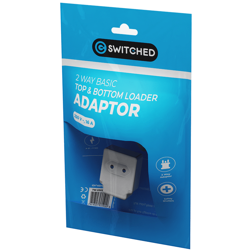 Looking for a reliable 2 way plug adaptor for your everyday electronics? The Switched 2 Way Adaptor Top and Bottom Loader – White is the perfect solution for powering multiple Euro-style devices safely and efficiently. Its unique top and bottom socket layout offers greater convenience in tight spaces, making it a smart choice for both home and office use.Ideal for those needing a Euro plug adaptor in South Africa, this adaptor supports 2x 5A Euro sockets with a total input of up to 16A. Whether you’re charging your phone, powering a lamp, or using a small appliance, it handles your needs without the bulk. Built-in safety shutters add a layer of protection, giving you peace of mind in busy environments.