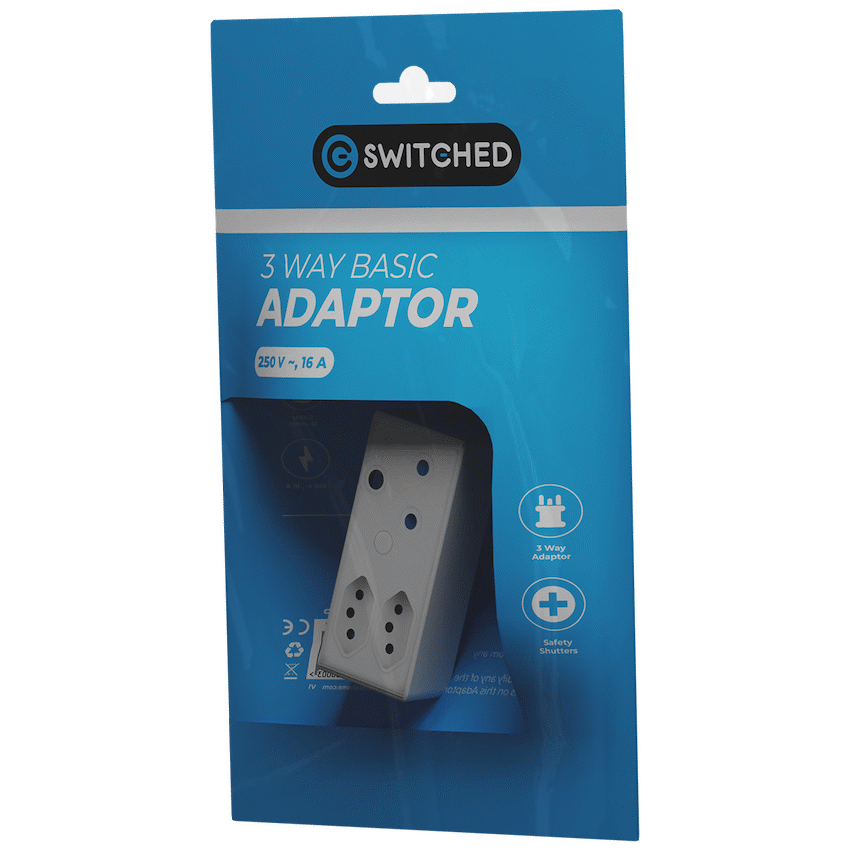 Power multiple devices from a single wall socket with the Switched 3-Way Plug Adaptor, a practical solution for everyday power needs. Designed for local compatibility, this 3-way plug adaptor for South Africa includes one standard 3-pin 16A socket and two SANS 164-2 sockets, making it ideal for connecting chargers, fans, lamps, and other light-duty appliances.The adaptor is fitted with built-in safety shutters to protect against accidental contact, especially useful in households with children. It supports a maximum current of 16A at 250V, making it suitable for most home and office applications.Whether you need a reliable power splitter at your desk, in the kitchen, or when travelling, this Switched 3-pin adaptor offers dependable performance and peace of mind with its compact and durable design.