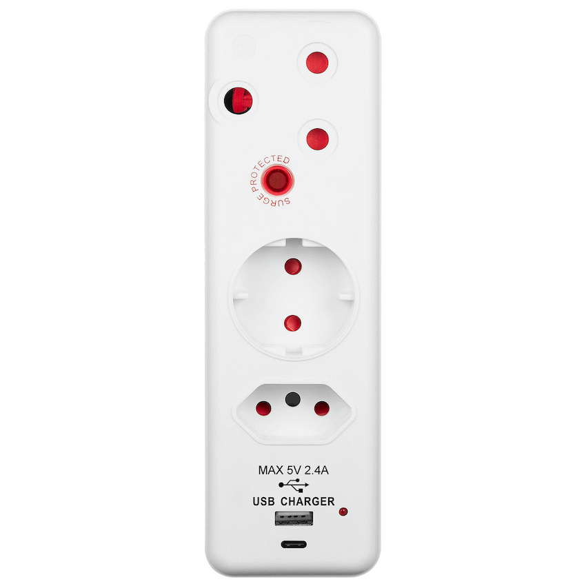 Power and protect your devices with the Switched 3-Way Surge Protection Adaptor with USB & Type C, your all-in-one charging and connection solution for modern homes and offices in South Africa. Designed with a sleek profile and packed with practical features, this surge protection adaptor with USB is ideal for desktops, bedside tables, or travel bags.Equipped with one 3-pin socket, one SANS 164-2 socket, and a Schuko socket with surge protection, it safely supports multiple plug types-including EU-compatible devices. It also includes dual USB charging ports (USB-A and Type-C) that deliver up to 2.4A, making it perfect for powering up phones, tablets, and other USB-powered tech.This 3 way surge plug with USB and Type C offers reliable protection with a 458J rating and 16,000A total surge current, giving you peace of mind during power spikes.