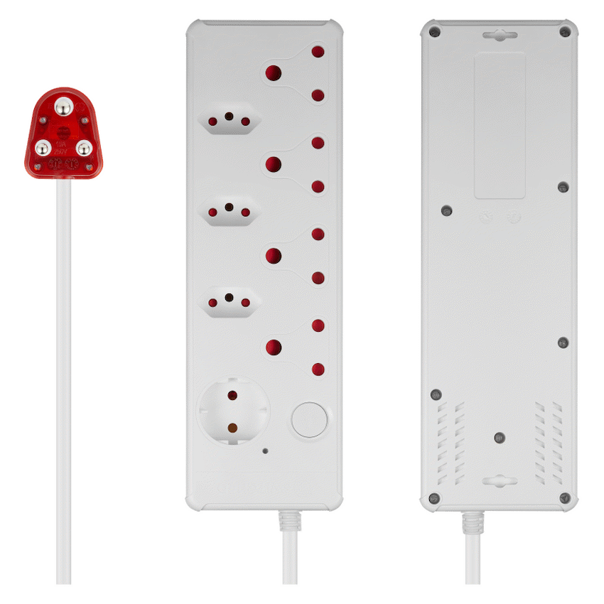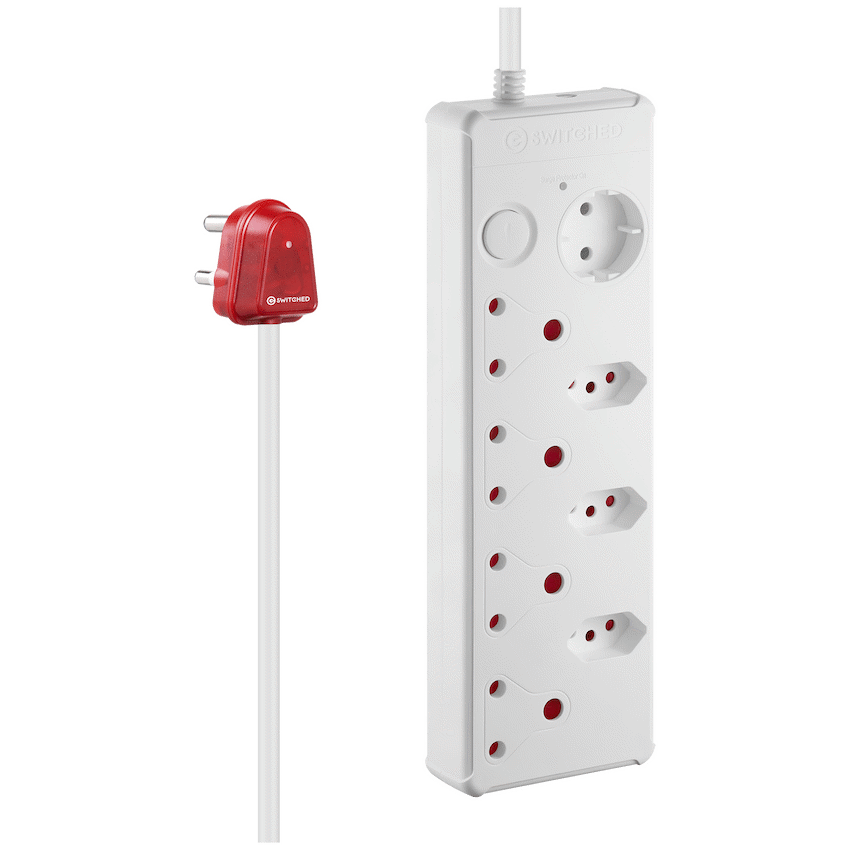 Power your essential devices safely and efficiently with the Switched 8-Way High Surge Protector Multiplug. Built for the modern South African household, this compact solution supports up to 8 devices and offers 1140 Joules of high surge protection-perfect for protecting sensitive electronics during load shedding or lightning storms.Whether at home or in the office, this surge protector multiplug ensures peace of mind with built-in overload protection, a reset button, and safety shutters for enhanced user and child safety. The short 0.5m cord makes it perfect for tight spaces where cable management is key-like desks, counters, and media consoles.Designed with South African compatibility in mind, it features a smart combination of 3-pin, SANS 164-2, and Schuko sockets, ensuring flexibility for a wide range of devices. With Switched, you can trust in quality that lasts and protection that matters.