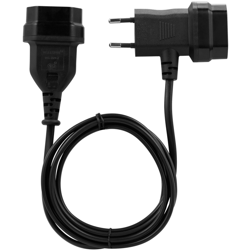 Switched Easy Cable Extender 2-Pin Euro to T-Shape AC 2-Pin Euro Socket 2m – Black