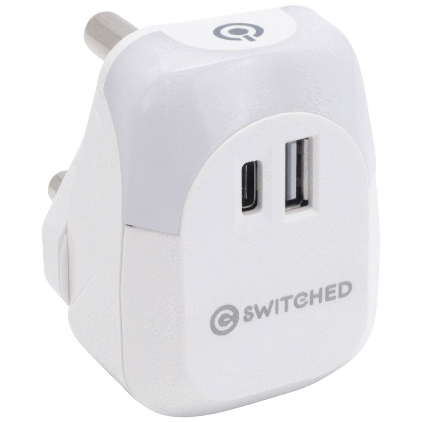 Power your devices quickly and safely with the Switched Halo Fast Charge Power Adaptor, the perfect all-in-one solution for modern homes and tech users. Featuring both USB-A and USB-C ports, this fast charge power adaptor supports up to 20W output, making it ideal for charging smartphones, tablets, and more with speed and efficiency.Designed with convenience in mind, this USB and Type-C wall charger includes a built-in night light with three brightness modes (High, Medium, Low), controlled via a soft touch sensor-perfect for bedrooms, hallways, or any space that needs subtle illumination without sacrificing socket access.This compact charger also comes with over-voltage, over-current, and short-circuit protection, giving you safe, reliable power delivery in any environment. Whether you’re looking to upgrade your home setup or travel with a versatile charger, this is a must-have power solution