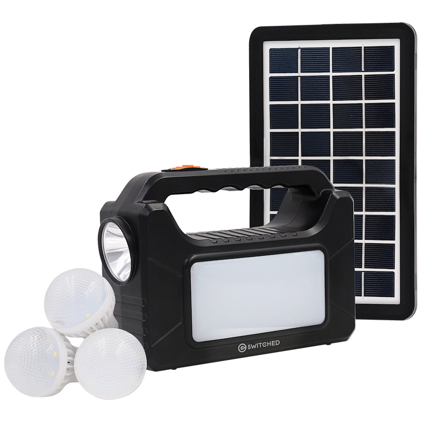 The Switched Power Station is a must have for in the car, at home or out camping. It has a USB output to charge your mobile phone and other favourite gadgets. Keep the lights running longer with 12 – 25 hours of LED usage. You are able to choose between the light panel and solar panel to run so it can keep shining even if there is no power to charge it. All this makes this the Solar Panel emergency lighting system to have.Specifications:- Solar Panel Emergency Lighting System- LED: 1W LED flashlight, 60 x 2835 SMD- Light Panel, 3 x 3w LED Bulbs- Solar Panel: 9V, 3W- Built-in 6V, 4AH Battery- Housing: ABS plastic- Charging :AC Charging or Solar Charging- USB Output to Charge Mobile Devices- LED Usage: LED Side Panel – 12 Hours; Single Bulb – 25 Hours; Two Bulbs – 12 HoursWhat’s in the box1 x 9V Solar Panel3 x 3M Switched Led Bulbs1 x AC Power Cable1 x USB Charging Cable1 x Instruction Manual