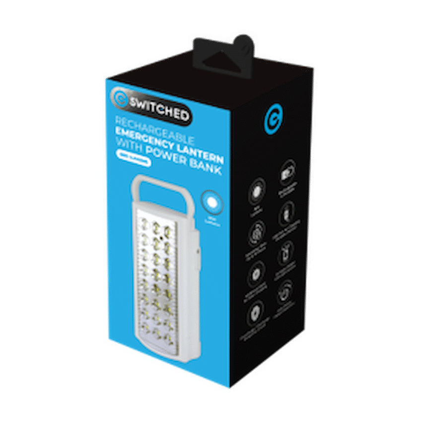 Be ready for anything with the Switched Rechargeable Emergency Lantern 800 Lumen – your reliable lighting solution during load-shedding, outages, or outdoor adventures. With powerful 5730 SMD LEDs and up to 800 lumens of brightness, this compact lantern ensures visibility when it matters most.Designed for both home and on-the-go use, this rechargeable emergency lantern features a high-capacity 4AH sealed lead acid battery that delivers up to 50 hours of light on low mode. Charging is easy with the built-in Euro 2-pin cable, and while a solar panel is not included, it’s also compatible with DC solar charging for added flexibility.Equipped with 3 lighting modes (High, Medium, Off), it adapts to your environment. It also includes auto power failure detection-activating instantly when the power goes out. Plus, the integrated USB charging port turns the lantern into a backup power bank, keeping your mobile devices charged when you’re off-grid or during emergencies.This 800 lumen lantern is ideal for camping, power cuts, or working in dark areas-compact yet packed with smart features for everyday resilience.