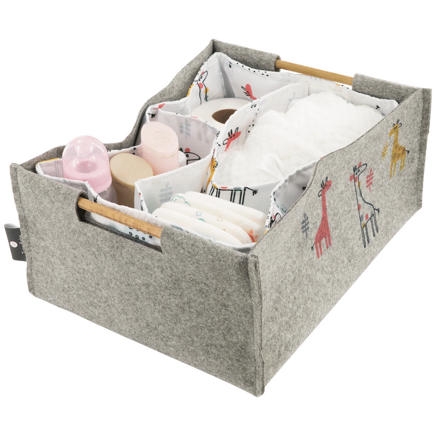 A Nursery Caddy that comprises stunning artistry with an ethical backbone! Recycled materials that are sustainably sought form part of a community project in South Africa that aids both communities and the environment. Taking an economical, environmental and socially sustainable approach, this Totes Babe Nursery Caddy gives you the opportunity to be part of an awesome, eco-friendly movement while enjoying a practical and beautiful nursery caddy.Saligna wooden handles give this nursery caddy a classy finish while multiple storage compartments allow you to store all of your baby’s essential items neatly. Fully collapsible, easy storage is just another perk of this stunning Totes Babe Caddy.Special Features:- Outer material: 100% rPet non-woven felt- Inner material: Polyester with 40% rpet yarn content- Mutiple Storage compartments- Saligna wooden handles- Fully Collapsible for Easy Storage- 100% rPet Natural Stitchbond Drawstring Laundry Bag IncludedWhy this product?- Made from 100% recycled plastic bottles, in a community project in South Africa.- 100% local, 100% responsibly sourced, 100%for the environment.- Its beautiful and 100% safe for baby!What’s in the box1x Totes Babe Nursery Caddy – Giraffes1x Laundry Bag