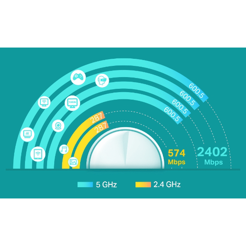 TP-Link Deco X60(2-Pack) AX5400 Whole-Home Mesh Wi-Fi 6 System(Tri-Band)Faster Connections: Wi-Fi 6 speeds up to 5,400 Mbps-4,804 Mbps on 5 GHz and 574 Mbps on 2.4 GHz.Connect More Devices: OFDMA and MU-MIMO technology quadruple capacity to enable simultaneous transmission to more devices.Boosted Seamless Coverage: Achieve seamless whole-home coverage with a clearer and stronger whole-home Wi-Fi signal generated by Wi-Fi 6.Ultra-Low Latency: Greater reduction in latency enables more responsive gaming and video chatting.One Unified Network: Multiple units form a whole-home network that auto-selects the best connection as you move around your home.Total Security: WPA3 encryption and TP-Link HomeShield provide personalized features, including Parental Controls, Antivirus, and Quality of Service (QoS) to ensure a safer online experience.TP-Link HomeShield: Keeps your home network safe with cutting-edge features for network and IoT protectionSetup Made Easier Than Ever: The Deco app walks you through the setup step-by-step.