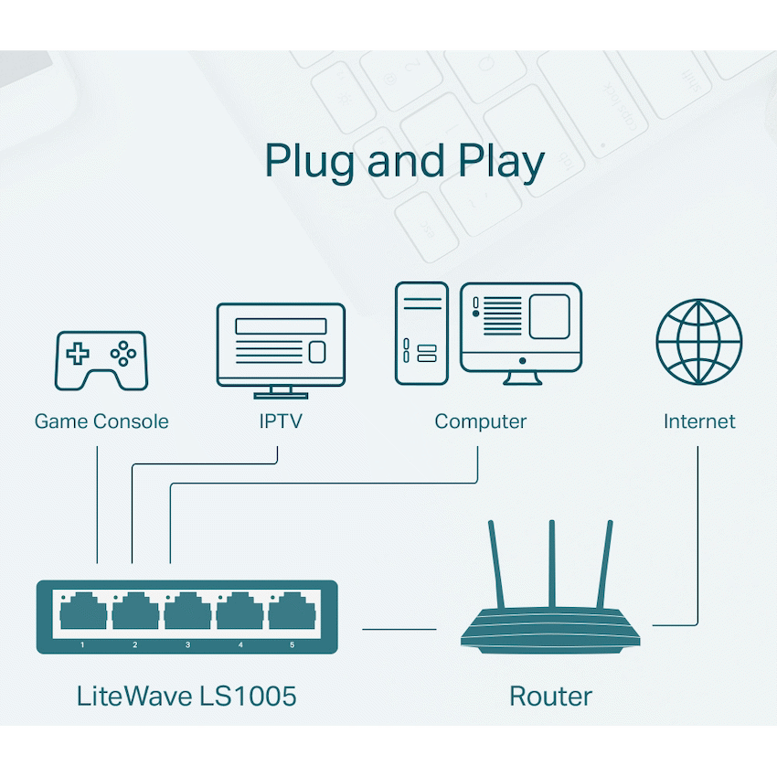 The TP-Link LS1005 is a compact and dependable 5-port 10/100 Mbps desktop switch, designed to provide simple and efficient wired network expansion for homes, small offices, and basic business environments. With its plug-and-play design and quiet operation, the LS1005 offers an easy networking solution without the need for technical setup or configuration.Equipped with five 10/100 Mbps Auto-Negotiation RJ45 ports, the LS1005 automatically detects and adjusts connection speeds to ensure optimal performance for each connected device. Support for Auto-MDI/MDIX eliminates the need for crossover cables, allowing you to connect computers, printers, IP cameras, or other network devices effortlessly.