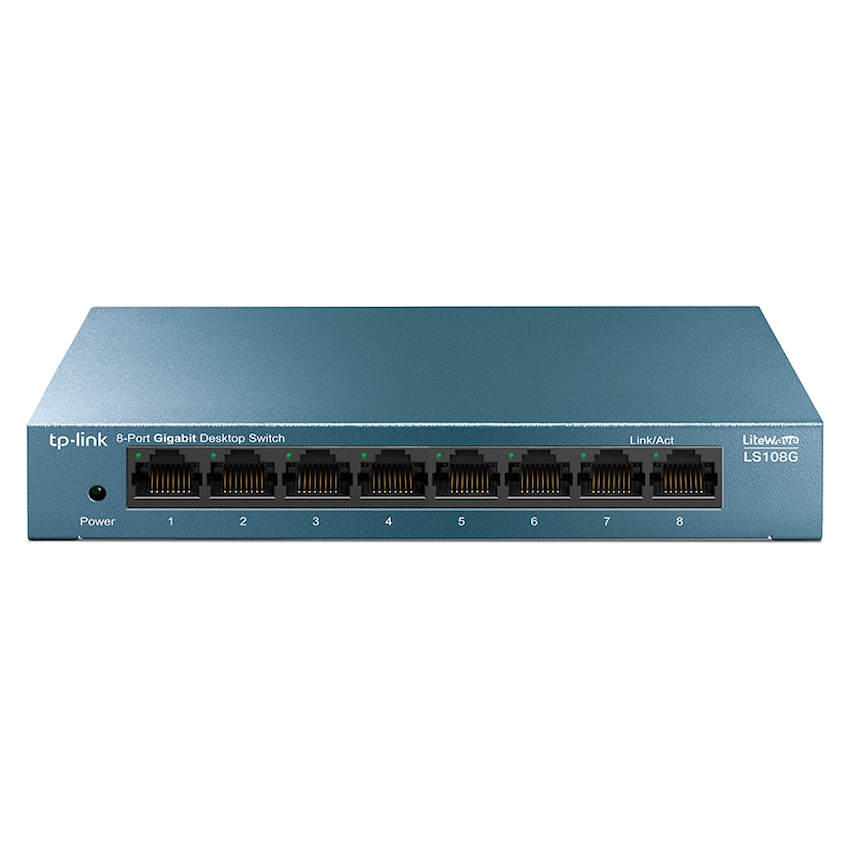 The TP-Link LS108G LiteWave 8-Port Gigabit Desktop Switch is a high-speed, energy-efficient networking solution designed to expand wired connectivity in homes, small offices, and workgroups. Part of TP-Link’s LiteWave Series, this unmanaged switch offers plug-and-play simplicity with blazing-fast Gigabit performance, making it ideal for transferring large files, streaming HD content, and supporting bandwidth-intensive applications.Equipped with eight 10/100/1000Mbps RJ45 ports, the LS108G enables seamless data transfer between computers, printers, IP cameras, NAS devices, and smart TVs. Each port supports Auto-Negotiation and Auto MDI/MDIX, eliminating the need for crossover cables and allowing flexible deployment without manual configuration.Its fanless design ensures completely silent operation, making it perfect for noise-sensitive environments such as studios, libraries, and home offices. The compact desktop form factor allows for easy placement on desks, shelves, or tight spaces, while the durable metal housing provides enhanced heat dissipation and long-term reliability.