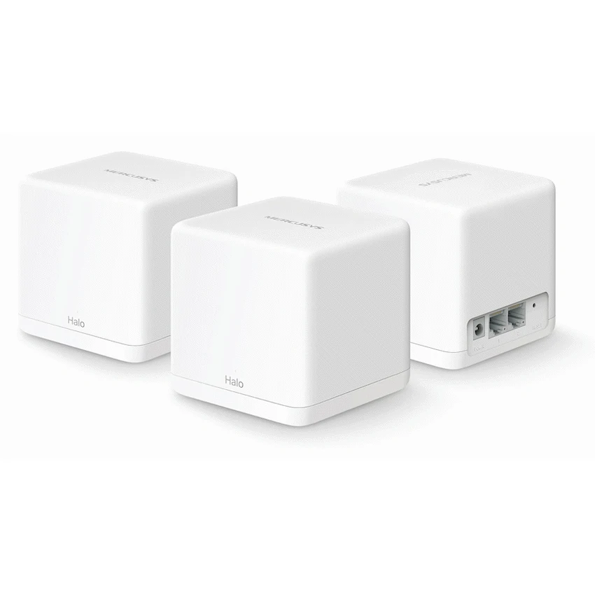 TP-Link Mercusys Halo H30G(3-Pack) AC1300 Whole Home Mesh Wi-Fi SystemOne Unified Network – With advanced Mesh Technology, Halo units work together to form a single unified whole home network with one WiFi name and password.Seamless Roaming – Automatically switch between Halos as you move around your home, always getting the best signal to enjoy the fastest connections for all your devices.Whole Home Coverage – Blanket up to 3,500 ft2 (320 m2) with high-speed WiFi, eliminating WiFi dead zones at your home.1.3 Gbps Dual Band WiFi – Halo H30G provides fast and stable connections up to 100 devices with speeds of up to 1,300 Mbps and works with major internet service providers (ISPs) and modems.Easy App Control – Use the MERCUSYS App to quickly set up and manage your WiFi.Full Gigabit Ports – 2x Gigabit ports per Halo unit for lightning-fast wired connections*Please note that the Halo H series and S series cannot work together.