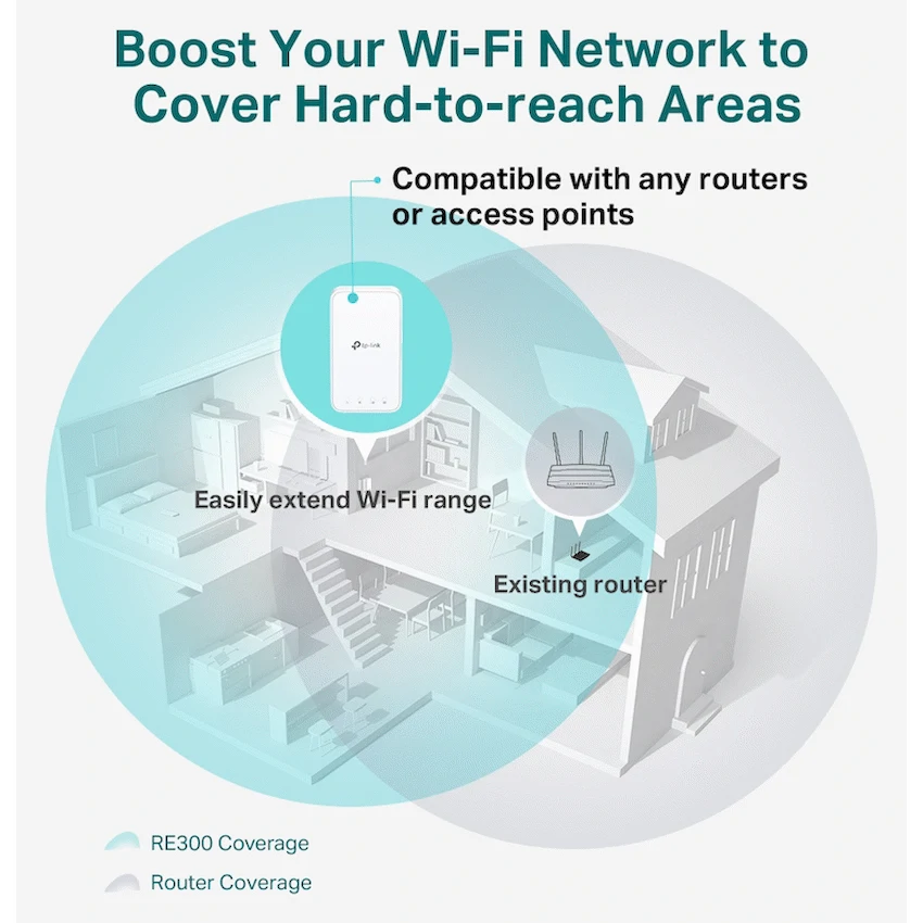 Get rid of Wi-Fi dead zones and enjoy smooth, fast connections with the TP-Link RE300 AC1200 Wi-Fi Range Extender. Offering dual-band speeds up to 1200Mbps, this extender boosts your existing router’s coverage, making it ideal for HD/4K streaming, online gaming, video calls, and browsing across multiple devices.With support for both 2.4GHz and 5GHz bands, the RE300 provides reliable performance for different needs-2.4GHz for basic tasks like browsing and emailing, and 5GHz for demanding applications like streaming and gaming.The intelligent signal indicator helps you find the best location for maximum coverage, while the TP-Link Tether app makes setup and management quick and easy right from your smartphone. The compact wall-plug design allows discreet installation without clutter.Enjoy faster, stronger, and more reliable Wi-Fi throughout your home with the TP-Link RE300 AC1200.