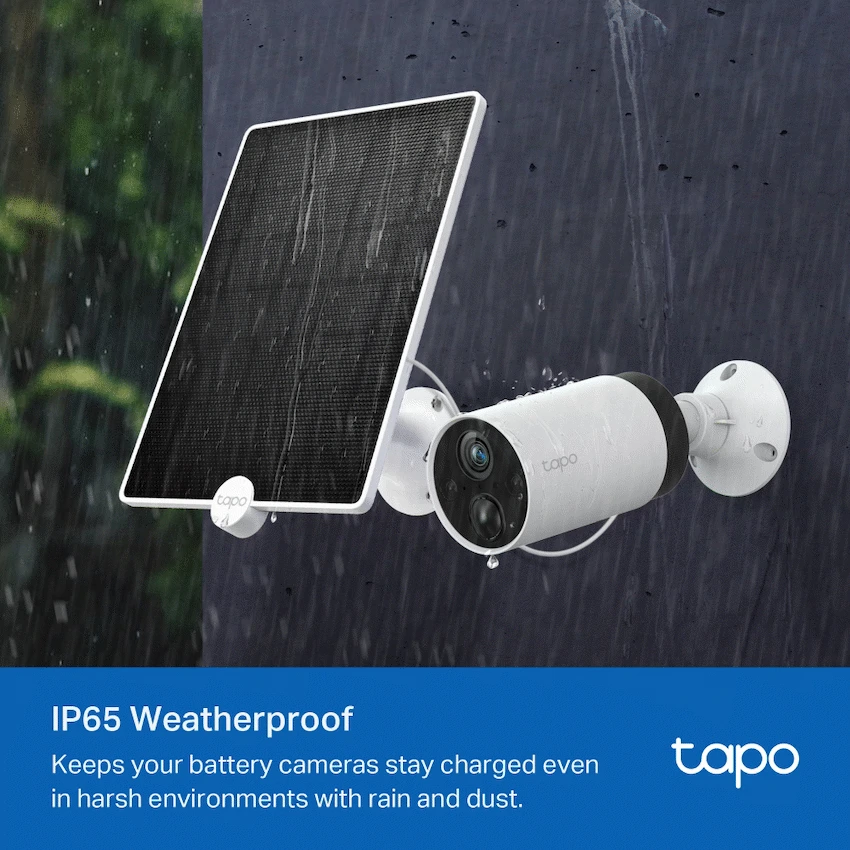 Power your Tapo smart security cameras sustainably with the TP-Link Tapo A200 4.5W Solar Panel. Designed for convenience and reliability, this high-efficiency solar panel provides a continuous power supply for compatible Tapo cameras, reducing the need for frequent battery changes or manual recharging.With its 4.5W high-conversion efficiency, the Tapo A200 ensures consistent energy delivery-even in variable weather conditions-so your cameras stay online and recording around the clock. Its weatherproof design (IP65-rated) makes it durable and reliable outdoors, withstanding rain, dust, and harsh environments.The adjustable mounting bracket and 3m weather-resistant cable provide flexible installation options, allowing you to position the panel in the best spot for maximum sunlight. Combined with its eco-friendly, cost-saving design, the Tapo A200 is the smart solution for hassle-free, sustainable camera power.Perfect for homes, offices, or remote locations, the TP-Link Tapo A200 keeps your security system running smoothly while reducing your carbon footprint.