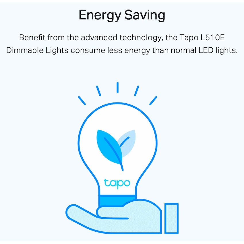 TP-Link Tapo L510E 8.7W Smart Wi-Fi Warm White Light Bulb, Dimmable, A60, E27Dimmable (Adjust with Ease) – Manage the lighting at your fingertips to create the perfect atmosphere in your home anytime.Dimmable (Preset for Convenience) – Found your favorite lighting for watching movies? Save it as a setting you can simply select for future movie nights.Schedule (Set Your Times) – Create a regular schedule to turn on/off with the brightness you setSchedule (Sunrise and Sunset Modes) – Automatically activate your light according to your time zoneVoice Control – Manage the lights with your voice commands as Tapo works with Amazon Alexa and Google AssistantRemote Control – Take your phone out of your pocket and open the Tapo app to control your light remotelyAway Mode – Automatically simulate someone being at home to frighten away unwanted visitors.