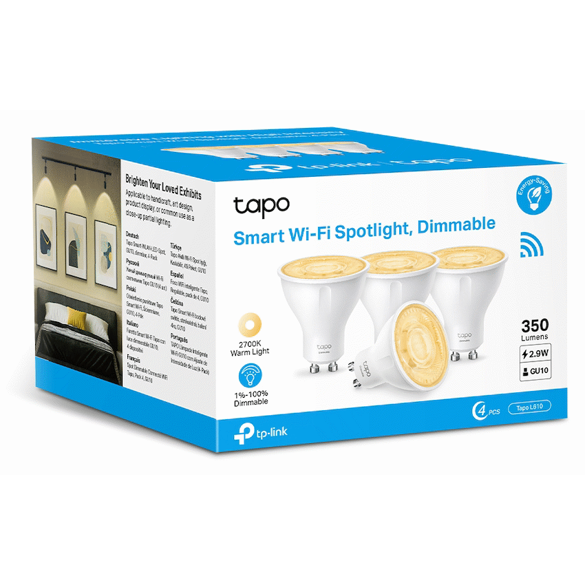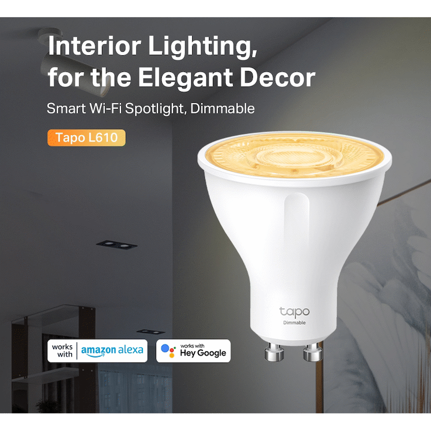 TP-Link Tapo L610 2.9 Smart Wi-Fi Bulb 2.9W Warm White, Dimmable, GU102,700 K Warm Light- Set off a cozy and comfortable vibe for your home or any other public space1~100% Dimmable – Dim to any brightness you desire for constantly-changing needs.High Lumen – Emits 350 lm light that is bright enough to shed light on any objectGU10 Lamp Base – Compatible with any GU10 fixtures well. No extra burden for your first attempt.Grouping – Control all the Tapo Smart Spotlights by just one click on AppEnergy Saving – Reduce energy use by operating energy savingly, without losing brightness or quality.Remote Control – Instantly turn the spotlight on/off wherever you are via the Tapo App.Schedule – Preset a fixed schedule to manage your smart devices automatically.Timer – Create countdown timer lists for more precise time control.Voice Control – Manage your Smart Spotlights with voice commands via Amazon Alexa or Google Assistant.Easy Setup & Use – No hub required, set up quickly and manage easily through the free App.