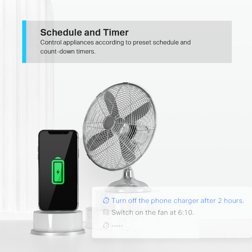 TP-Link Tapo P100(1-Pack) Wi-Fi 2.4G(1T1R), BT OnboardingRemote Control – Instantly turn connected devices on/off wherever you are through the Tapo appSchedule – Preset a schedule to automatically manage devicesTimer – Create countdown timer lists for connected electronicsVoice Control – Manage your smart plug with voice commands via Amazon Alexa or the Google AssistantAway Mode – Automatically turns devices on and off at different times to give the appearance that someone is homeCompact Design – Mini-sized to avoid blocking adjacent socketsEasy Setup and Use – No hub required, set up quickly and manage easily through the free app
