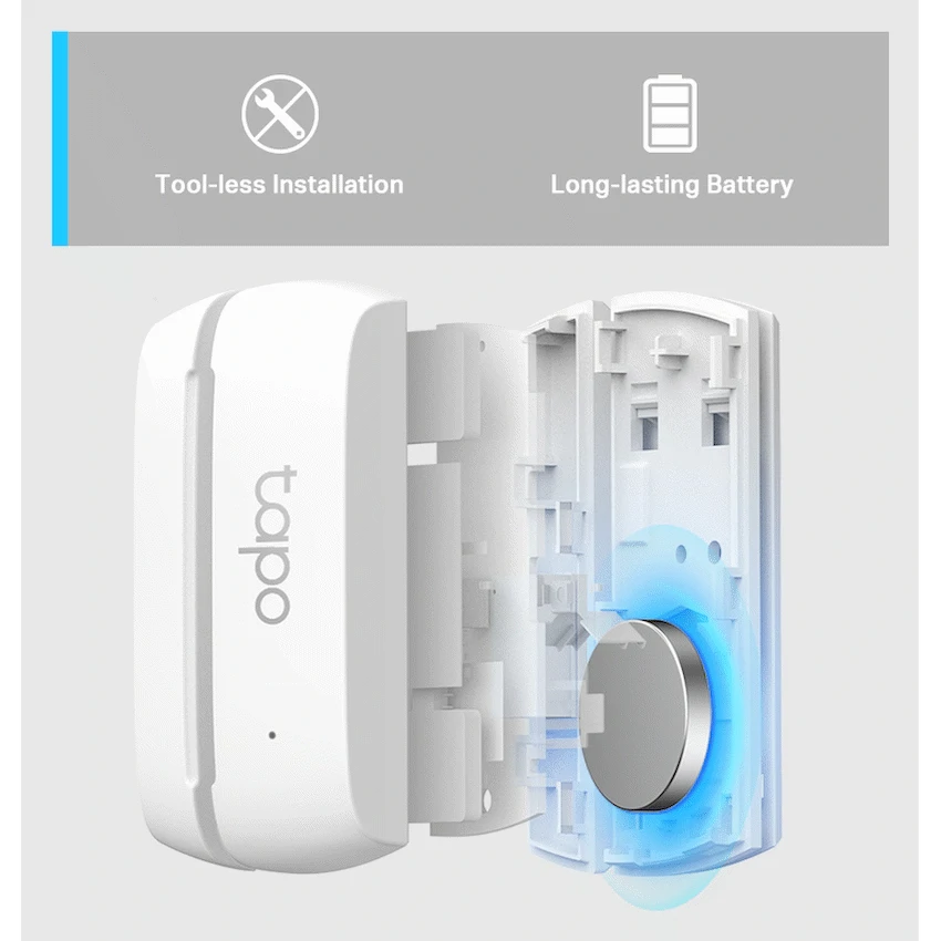 TP-Link Tapo T110 Smart 868MHz Door/Window Sensor, CR2032 batteryWindow/Door Safeguard – Monitors the opening & closing of windows, doors, cabinets, the fridge, or the mailbox in real time.Instant App Notification – Is your parcel locked away? Find out immediately with instant notifications.Smart Action Support – Connect the actions with other smart devices for a welcome return home.Easy Installation – Mount to nearly any surface with included 3M adhesive.Great Compatibility – Just one part of the integrated Tapo ecosystem.
