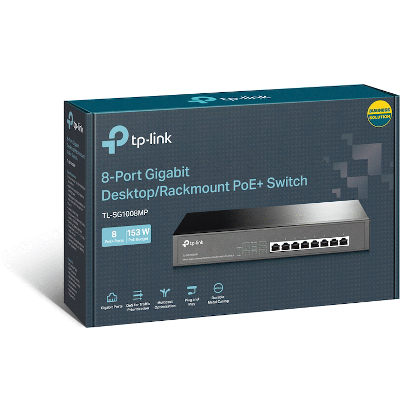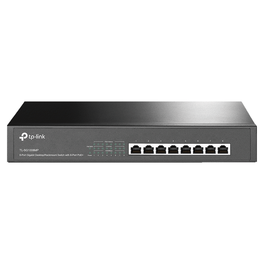TP-Link TL-SG1008MP 8-Port Gigabit Desktop/Rackmount Switch with 8-Port PoE+8 10/100/1000Mbps RJ45 portsEquipped with 8 PoE+ supported ports to transfer data and power over a single cableWorks with IEEE 802.3af/at compliant devices, expanding home and office networksInnovative energy-efficient technology reduces power consumption by up to 75%*Supports PoE+ standard with total power budget of 126W and up to 30W per portPlug and play design, no configuration required *Actual data may vary in different usage environment.