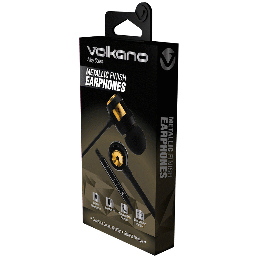 Experience superior audio performance and modern style with the Volkano Alloy Series Metal Earphones. These sleek earphones boast a metallic finish for a contemporary look, while delivering sharp, detailed audio quality that enhances your listening experience.Equipped with an innovative slider volume control, built-in microphone for hands-free calls, and a comfortable ergonomic fit, these earphones offer convenience and comfort for your everyday use.Elevate your audio experience with the Volkano Alloy Series Metal Earphones, combining style, comfort, and superior sound quality in one sleek package.Features:Modern metallic finish for a stylish twist on traditional earphones.Innovative slider volume control for precise audio adjustment.Built-in microphone for hands-free calls on the go.Comfortable fit ensures optimal sound quality during extended wear.Compatible with Apple iPod, iPhone, iPad, and other devices with a 3.5mm jack.