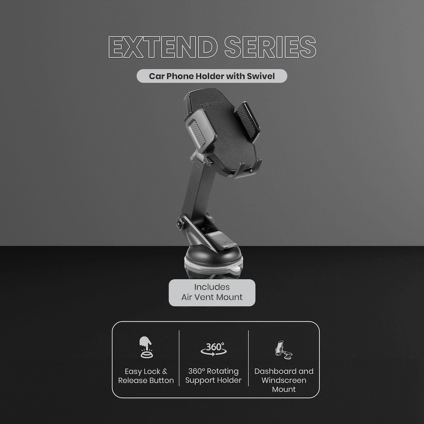 A versatile phone mounting solution for in-vehicle use. Easily suctions to any smooth surface or the windscreen and is fully adjustable to ensure the optimal viewing angle for the driver.
