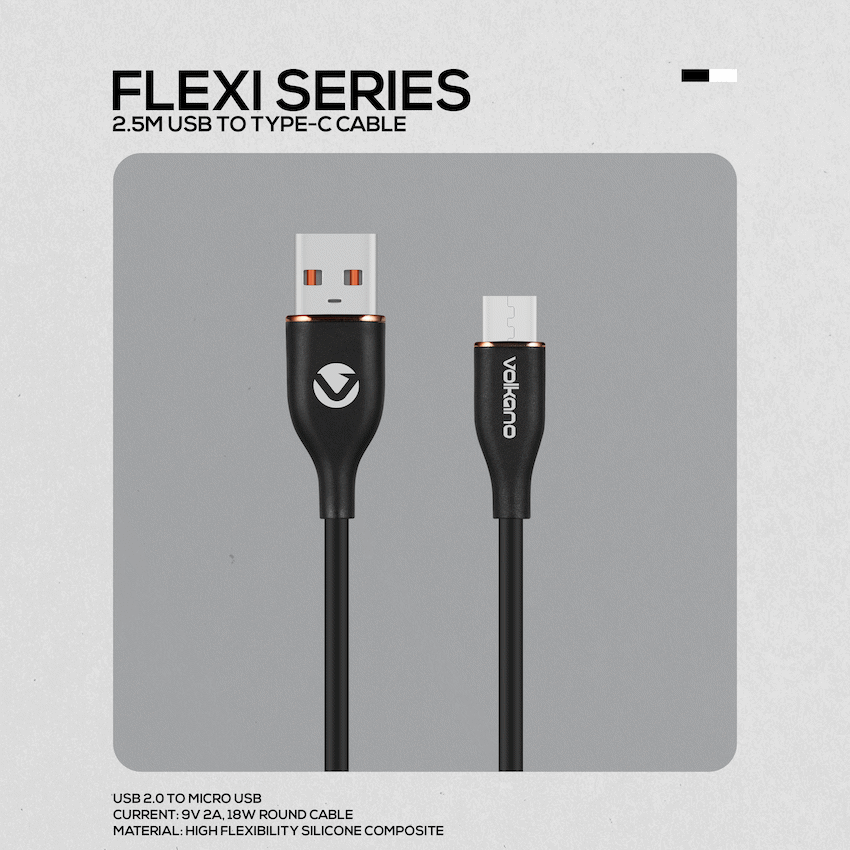 Volkano Flexi Series USB to Micro USB 2.5M 18W – Black