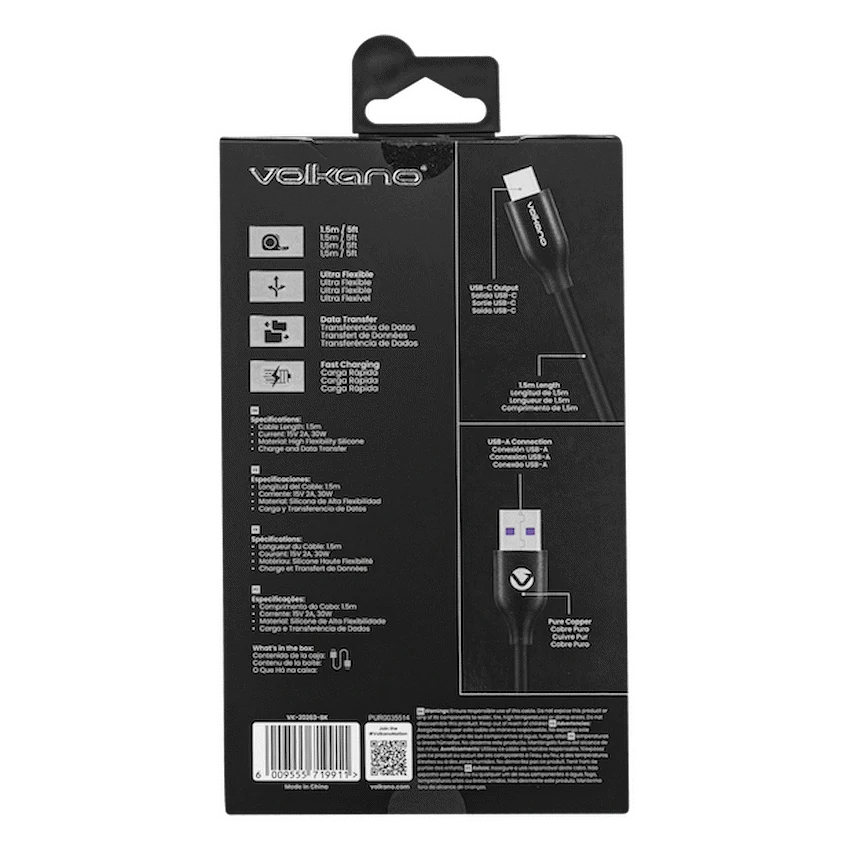 Volkano Flexi Series USB to Type-C 1.5m 30w – Black