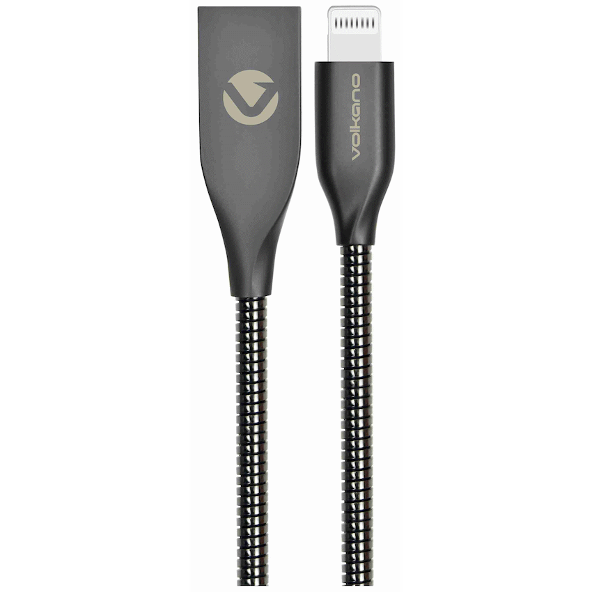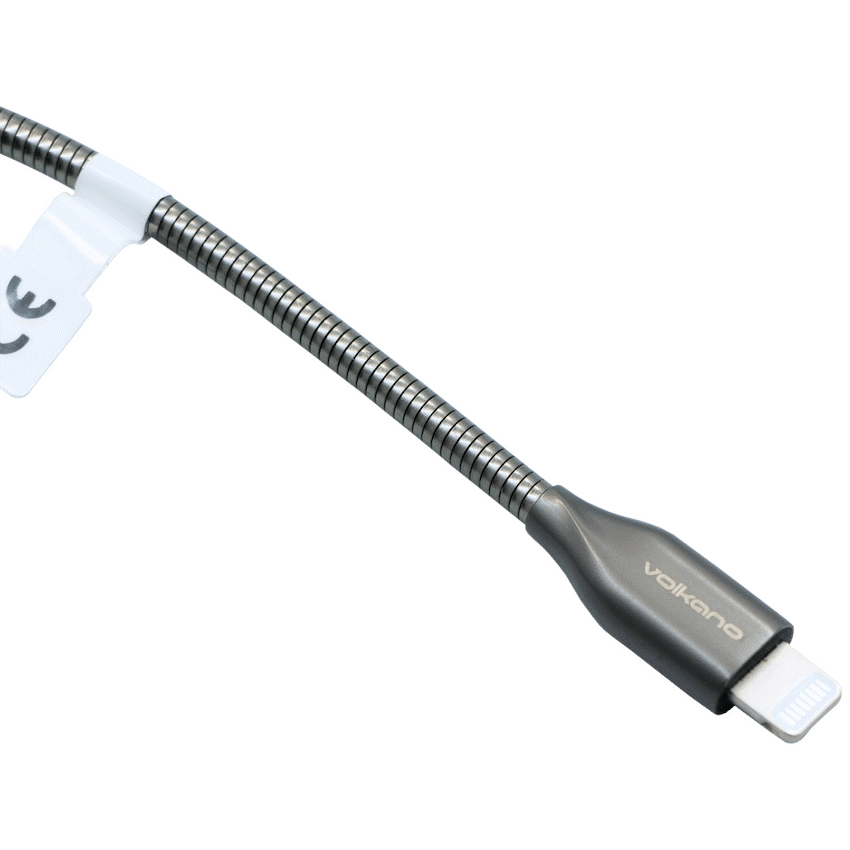 Volkano Iron Series Round Metallic Spring MFI Lightning Cable 6ft – Gun Metal