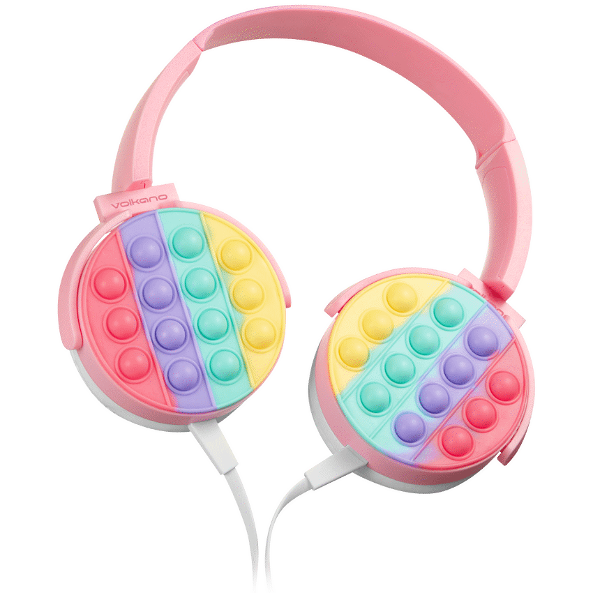 Volkano Kids Rainbow Popper Wired Headphones with 3.5mm Aux – Pink