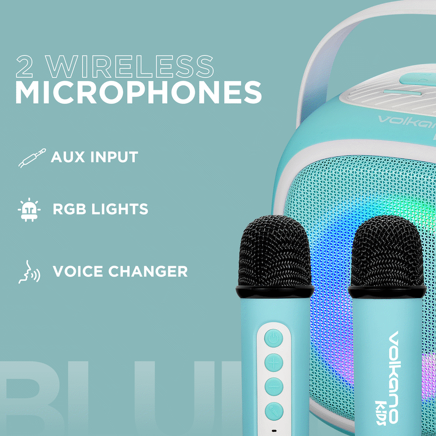 Volkano Kids SingMate Series Bluetooth Speaker with 2 Wireless Microphones – Mint