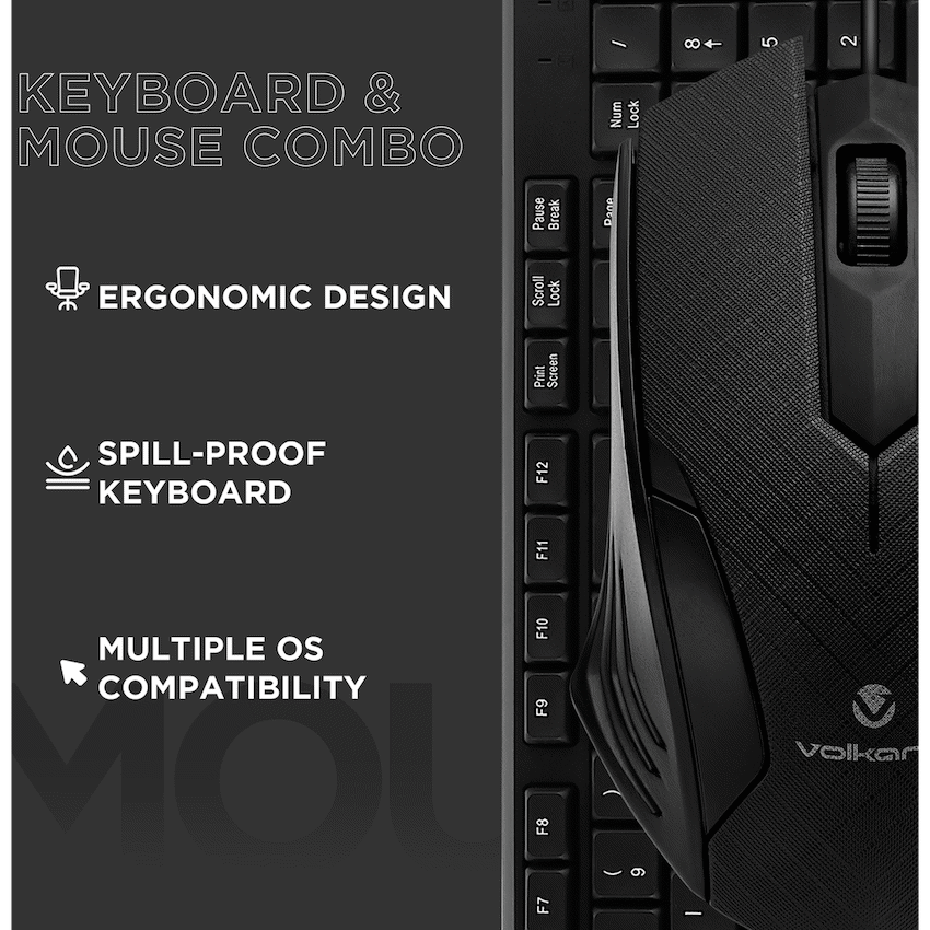 Work and play with confidence using the Volkano Krypton Series Wired Keyboard and Mouse Combo, built for reliability and comfort. The full-size spill-proof keyboard offers long-lasting durability and peace of mind, while its ergonomic design ensures comfortable typing through long work or study sessions.The included wired optical mouse delivers 1000 DPI precision, making it smooth and accurate for browsing, working, or casual gaming. Its ambidextrous design makes it equally comfortable for both left- and right-handed users.With USB plug-and-play connectivity, the Krypton Combo works instantly across multiple operating systems without the need for drivers. Reliable, practical, and easy to use, it’s the perfect combo for home, office, or school setups.
