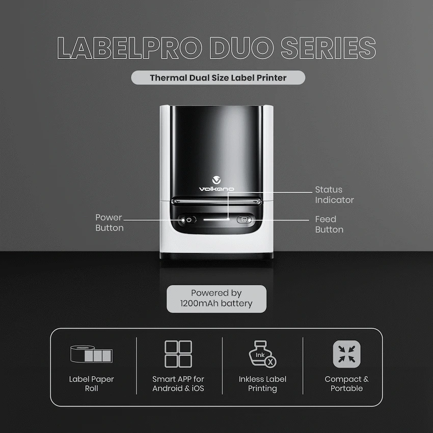 Volkano LabelPro Duo Series Thermal Dual Size Label Printer – Black and White