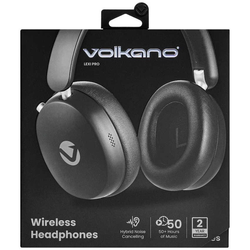 Experience your music, podcasts, and calls without distractions with the Volkano Lexi Pro Hybrid ANC headphones. Hybrid Active Noise Cancellation combines external and internal microphones to reduce ambient sound by up to 30dB, so you can focus-whether you’re commuting, working, or relaxing. When it’s time to go wireless, Bluetooth 6 ensures a stable connection.A powerful 500mAh battery delivers up to 50 hours of playtime (ANC off, 50% volume), or up to 35 hours with ANC on-perfect for long trips and busy weeks. Recharging is simple with the USB-C port, giving you a full charge in about 2 hours. A 5-microphone array helps the ANC work effectively and keeps your call quality clear, even in noisy spaces. Prefer to plug in The included auxiliary input lets you keep listening without using battery.Designed for life on the move, Lexi Pro’s folding, travel-friendly design and cushioned earcups provide a comfortable, compact fit. The 40mm drivers deliver immersive, punchy sound across your playlists, series, and calls-day after day.Stay focused, stay connected, and enjoy richer sound-anywhere, anytime.Feature HighlightsHybrid Active Noise Cancellation – Reduce ambient noise by up to 30dB for immersive listeningLong Battery Life – Up to 50 hours (ANC off) or 35 hours (ANC on) at 50% volumeClear Calls with 5-Mic System – Improved voice pickup and noise control during callsComfortable 40mm Drivers – Full, balanced sound for music, movies, and meetingsFoldable & Travel-Friendly – Compact design with comfy, cushioned earcupsAux Input Backup – Keep listening wired when neededTechnical SpecificationsBluetooth Version: 6Chipset: JL7018 F8Supported Profiles/Codecs: HSP, HFP, A2DP, AVRCP; SBC, AACWireless Range: ?10 mDriver Size: 40 mmImpedance: 32 ?Sensitivity: 112 dB +/-5 dB @1 kHzNoise Reduction: 30 dB +/-3 dBBattery Capacity: 500 mAhCharging Port: USB-C (5V DC 1A)Charging Time: ~2 hoursPlaytime (50% Volume): up to 35 hrs (ANC on) / up to 50 hrs (ANC off)Playtime (100% Volume): up to 30 hrs (ANC on) / up to 40 hrs (ANC off)What’s in the BoxVolkano Lexi Pro Hybrid ANC HeadphonesUSB-C Charging CableAuxiliary CableInstruction Manual