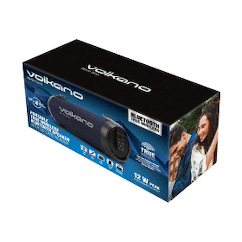 Features:- Bluetooth:- Version: 5.0- Profiles: A2DP, AVRCP- Range: 10 m- Chipset: JL- Driver: 3″”- Frequency Range: 100 Hz – 20 kHz- Sensitivity: 87 dB 3 dB- Battery: 1 500 mAh- Signal to Noise Ratio: 65 dB- Total Power Output: 8 W RMS = 12 W Peak- Max. Size for USB Drive: 32 GB- Aux: 3.5 mm Stereo Jack- Playtime: 2 – 4 Hours- FM Radio Range: 87.5 – 108.0 MHz- Charge Time: 5 Hours- Impedance: 4 ohmRegister your Limited Volkano Warranty today.””This product may come with an extended warranty. Please visit the Volkano home page and click on “”Warranty”” for more information””What’s in the box1 x Speaker