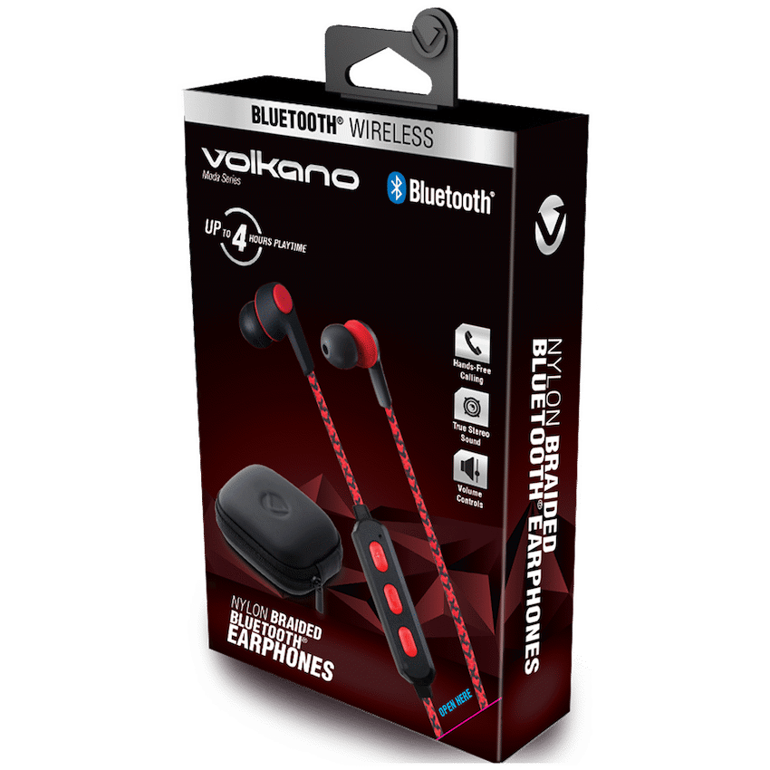 Volkano Moda – Nylon Bluetooth Earphones with Carry Case – RD