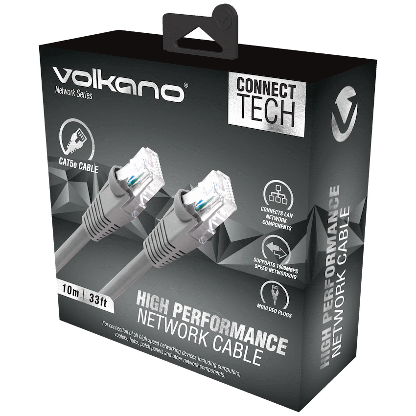 Extend your wired internet connection with the Volkano Network Series RJ-45 CAT5 Network Cable. Designed to connect wired network devices, this 10 m cable gives you extra reach-perfect for setups where your router, switch, or modem is further from your computer, console, or access point.Ideal for home, office, or classroom use, the CAT5 standard delivers stable and reliable connections for browsing, streaming, and light networking tasks. Its durable design ensures consistent performance and reduced interference over longer distances.With its generous 10 m length, this cable offers flexibility for larger spaces while maintaining dependable wired connectivity.