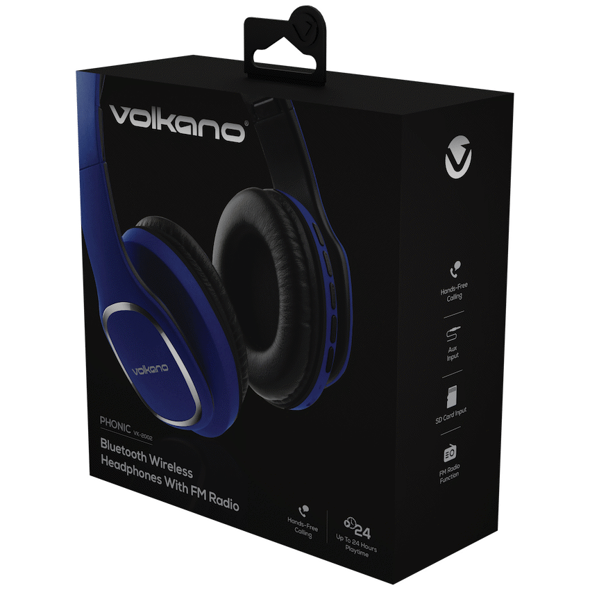 https://www.youtube.com/watchv=4nGdDhJdEYAMeet the Volkano Phonic Series Bluetooth Headphones – the perfect Volkano Bluetooth headphones for everyday listening, work calls, and study sessions. Enjoy seriously long battery life of up to 45 hours, meaning fewer charges and more music, podcasts, and meetings on the go. With multipoint connectivity you can pair two devices at once, so it’s easy to switch from your laptop to your phone without missing a beat. And when you want extra thump, activate Bass Boost for a richer, more immersive sound.Designed for convenience, these over-ear wireless headphones include a built-in mic for clear, hands-free calling and support for Google Assistant and Siri for quick voice control. Prefer cables or local files You’ve got options with Aux and TF card inputs. A modern USB-C port keeps charging simple, topping up from empty in about 2.5-3 hours. Comfortably cushioned earcups and a lightweight build make long listening sessions a pleasure – whether you’re commuting, focusing at work, or relaxing at home.Stay connected, enjoy powerful sound, and keep going for days between charges.Feature HighlightsUp to 45 Hours Playtime – Listen for days without constant rechargingDual-Device Connection – Seamlessly switch between phone and laptopBass Boost Function – Add extra low-end punch when you want itHands-Free Calling – Built-in mic for clear calls and voice notesVoice Assistant Ready – Works with Google Assistant & Siri for quick commandsVersatile Inputs – Bluetooth, TF card, and 3.5mm Aux for flexible listeningUSB-C Charging – Simple, modern port; recharge in +/-2.5-3 hoursTechnical SpecificationsBluetooth Version: V6.0 (JL7006 chipset)Profiles: AVRCP, A2DP, HFPWireless Range: 10 mImpedance: 32 +/- 3 ?Frequency Response: 20 Hz – 20 kHzSensitivity: 108 +/- 3 dBBattery: 500 mAh +/- 10% Li-ionDriver Size: 40 +/- 1 mmCharging Port: USB-CCharging Time: 2.5 – 3 hoursCharging Input: 5 V DC, 0.4 APlaytime (50% volume): 45 hoursPlaytime (100% volume): 40 hoursWhat’s in the BoxVolkano Phonic Series Bluetooth HeadphonesUSB-C Charging CableAux CableInstruction ManualStay connected and enjoy immersive sound-anywhere, anytime.