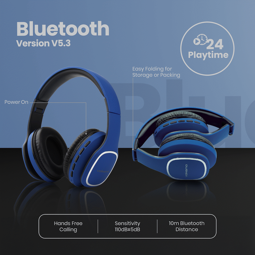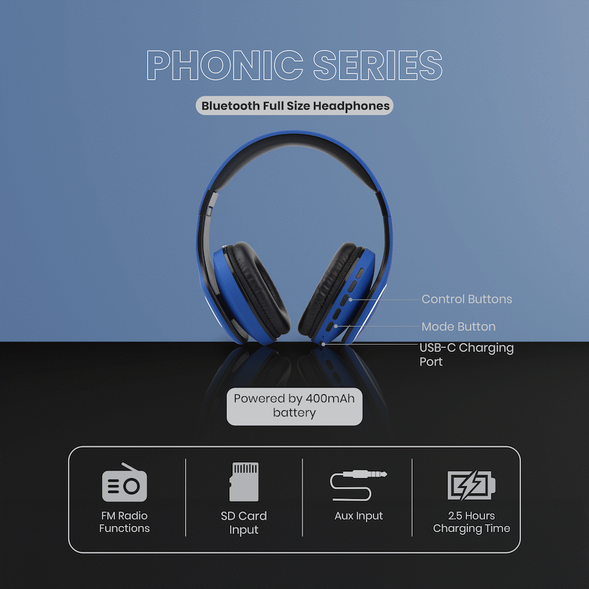 Volkano Phonic Series Bluetooth Full Size Headphones – Blue