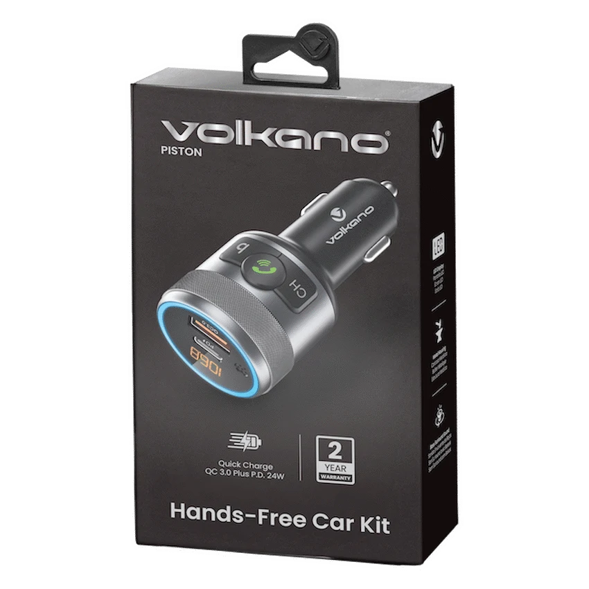 Metal Housing for added durability and stability. Supports the Quick Charge QC3 standard and specifications for faster charging. The LED Display lets you know exactly what is happening. USB Input to play your favourite jams. Dual charging ports lets you charge two devices simultaneously. Charge your devices on the go and never be caught with a dead battery. The Piston series supports Quick Charge 3 for compatible devices, so even on short trips your device will charge quicker! Jam to your favourite music via the USB port and stream to your car’s audio system for the best sound quality. Easily skip between tracks and even take hands-free calls on the go.What’s in the box1 x Volkano | Bluetooth Hands-Free Car Kit | Piston Series1 x Instruction Manual