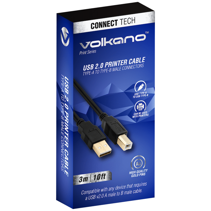 For use with any Wired Printer and quality sealed with a gold-plated connector, The Volkano Print Series USB Printer Cable is here to simplify your life and offers a more than sufficient length of 3m. SPECIAL FEATURES:- For Use with Printers and Any Device that- Requires a USB v2.0 A Male to B Male Printer Cable- USB 2.0 Male to Male USB Cable- Can be Used with any Wired PrinterSPECIFICATIONS:- Gold Plated Connector.- Length: 3 meters / 10 feet.- Function: For use with Printers and any device that requires a USB V2.0 A male to B male cable.What’s in the box1x Volkano Print Series USB 2.0 A Male to B Male Printer Cable