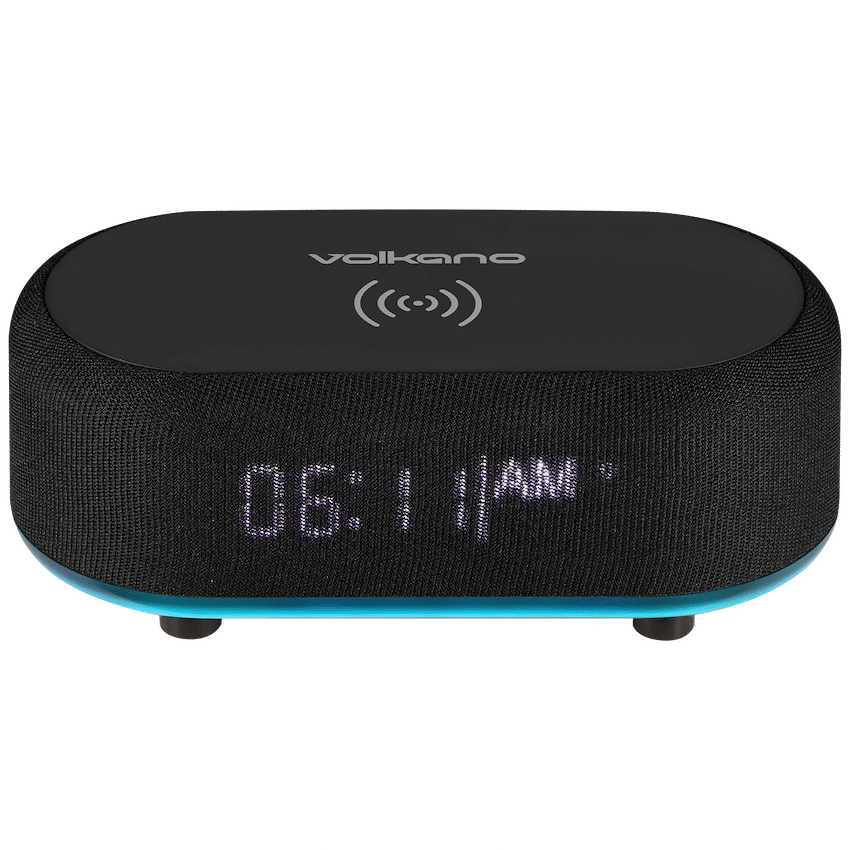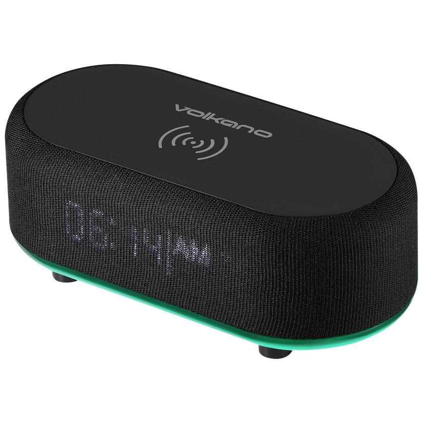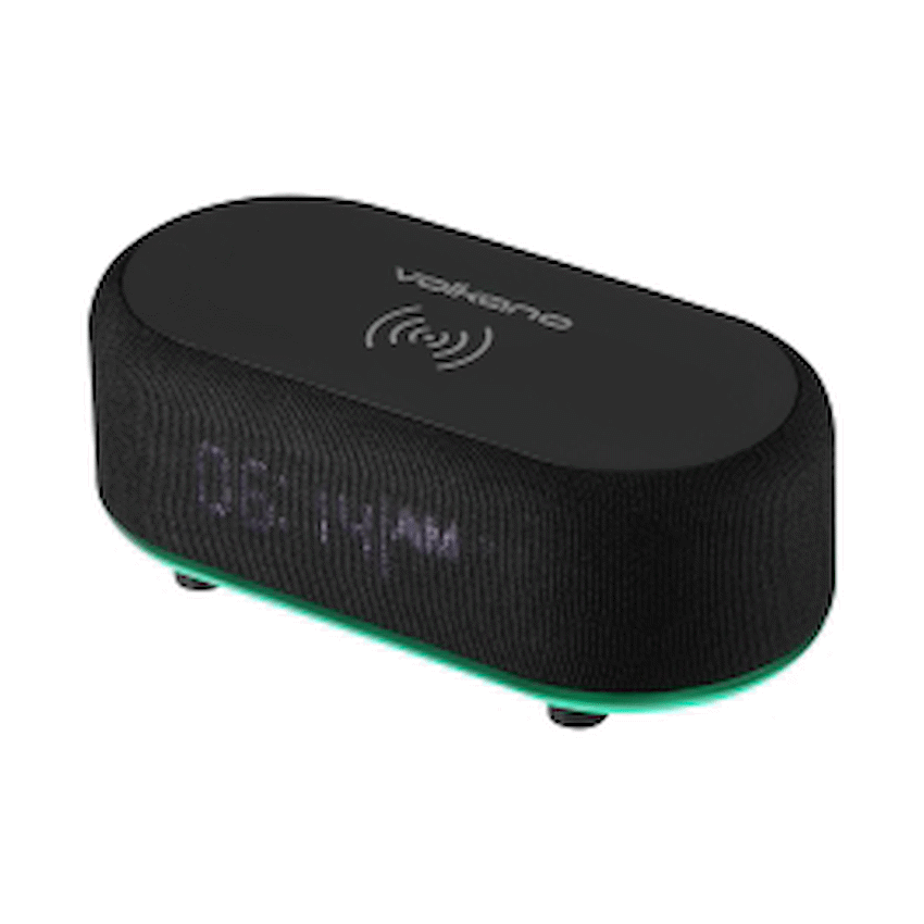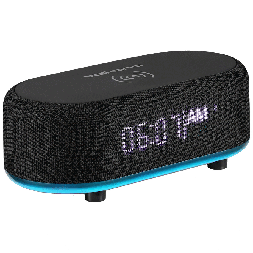 Volkano Radiant Series Alarm Clock with Wireless Charging and Speaker – Black