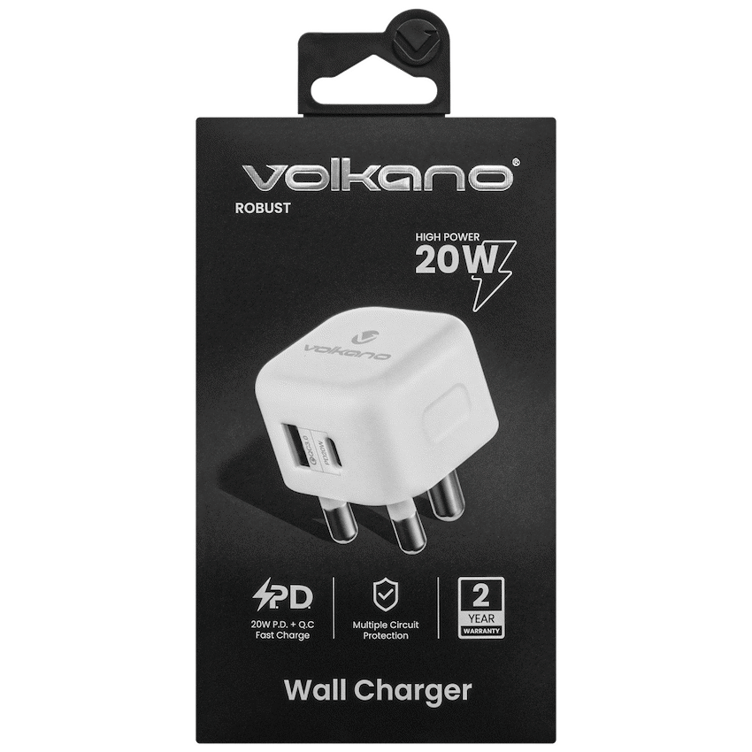 Volkano Robust Series 3-Pin SA to 20w PD + QC 3.0 Wall Charger