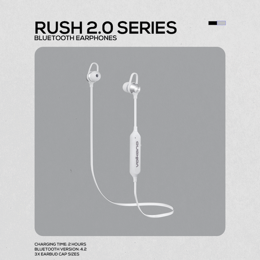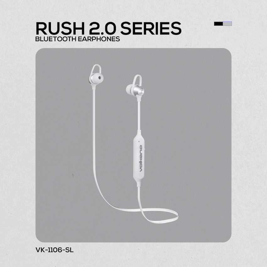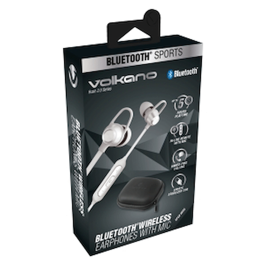 Volkano Rush 2.0 Bluetooth Earphones with Carry Case – Silver