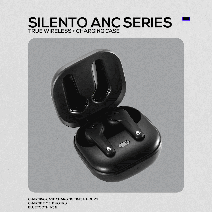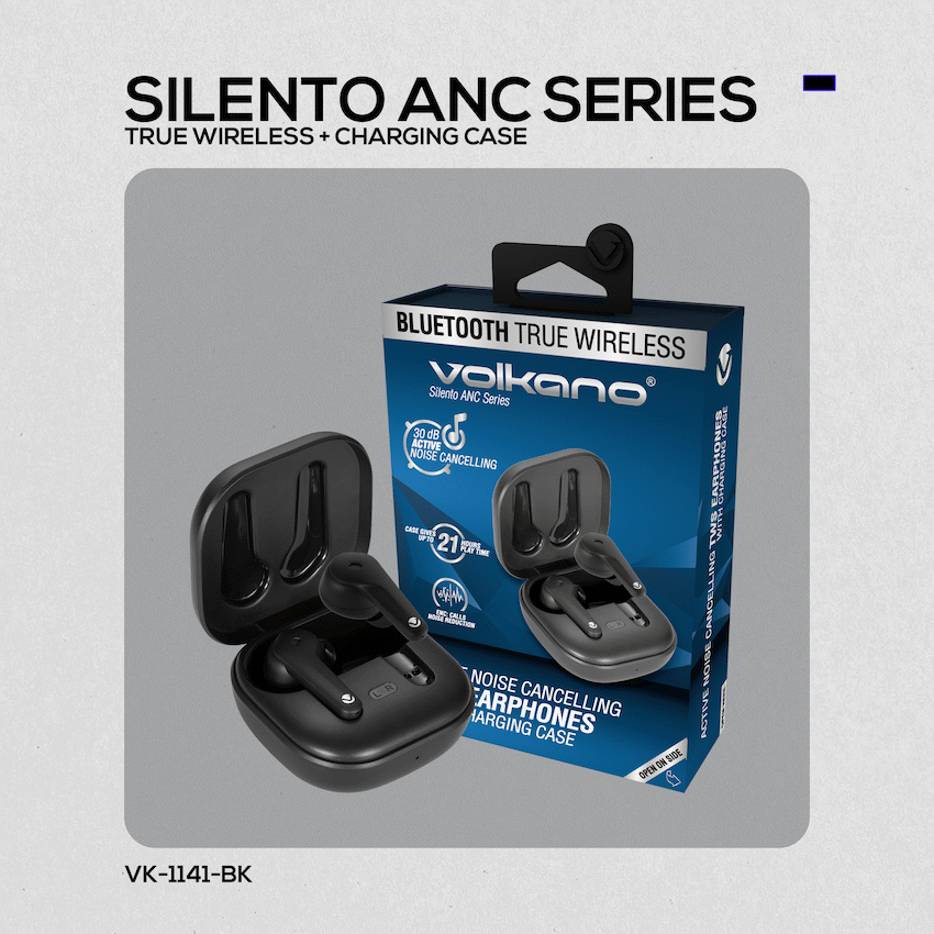 Volkano Silento ANC Series True Wireless + Charging Case – Black