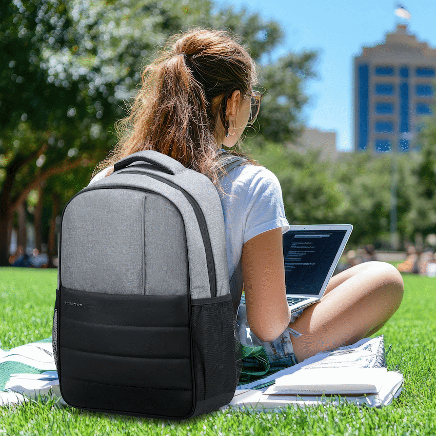 A high-quality laptop backpack with a padded compartment that fits laptops up to 15.6″. Multiple internal and external pockets provide ample storage for organizing chargers, cables, power banks, keys, wallets, water bottles, notebooks, documents, and other daily essentials. Made with durable, water-resistant materials and reinforced stitching for long-lasting use. Features adjustable padded shoulder straps, breathable back padding, a top handle for carrying, side handles for easy lift, and a secure zipper closure for added protection during travel or daily use.
