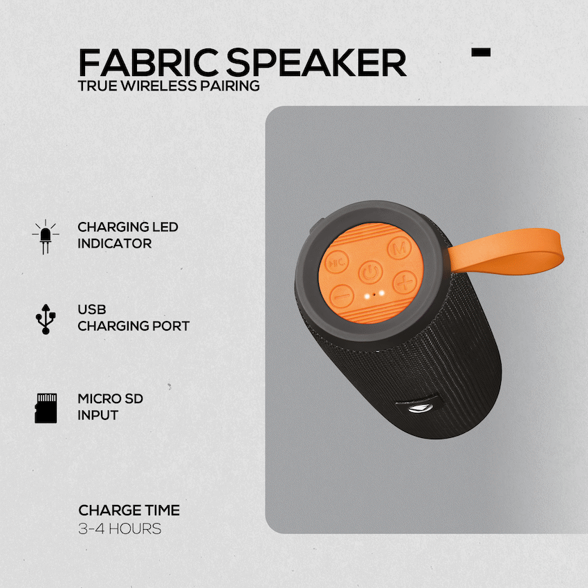 Introducing the Volkano Bluetooth Speaker Stun Series in sleek black, the ultimate companion for your music needs.With 10W of peak power, this speaker delivers booming sound that will keep you jamming wherever you go. Whether you’re hosting a party, relaxing at home, or hitting the road, the Stun Series ensures your tunes are always on point.Experience the convenience of multiple playback options with SD card and USB inputs, allowing you to enjoy your favorite tracks directly from your storage devices. Plus, with FM radio functionality, you can tune in to your favorite stations for even more variety. Not using the SD or USB inputs? No problem. The auxiliary input lets you easily connect this speaker to any device with a stereo output, ensuring seamless music playback no matter the source.